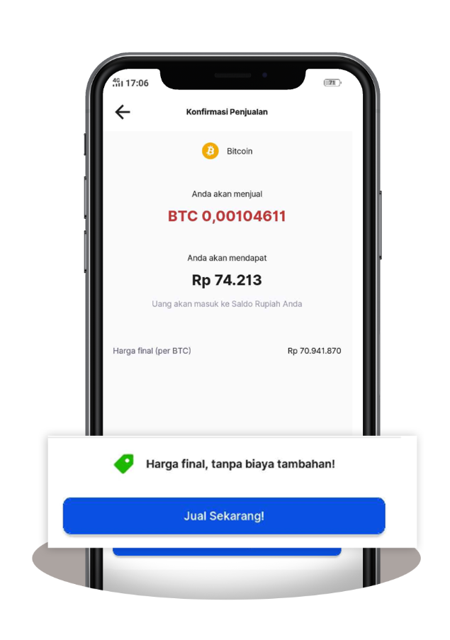 Masukkan jumlah Rupiah atau Crypto yang ingin Anda beli / jual. Anda dapat dengan mudah mengganti input antara Rupiah dan Crypto